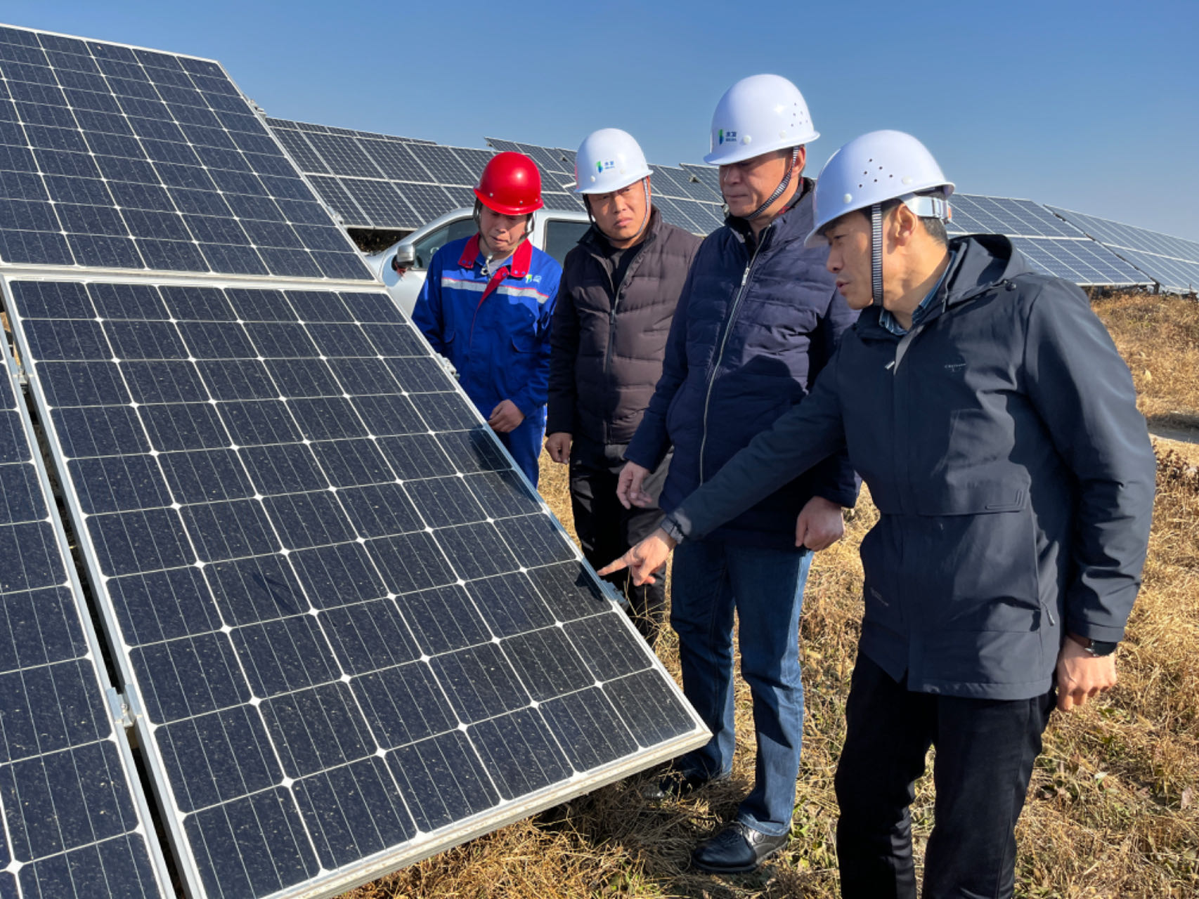 水發(fā)能源集團(tuán)副總經(jīng)理?xiàng)畹潞5揭司炫d光伏電站開(kāi)展冬季防火安全督導(dǎo)